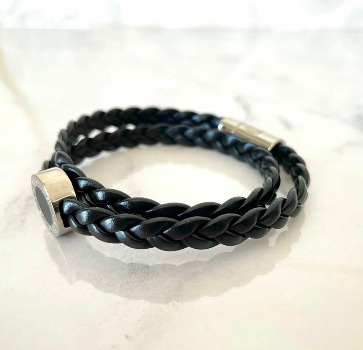 極美品 ブルガリ BVLGARI ブレスレット メンズ レザー ブラック 黒
